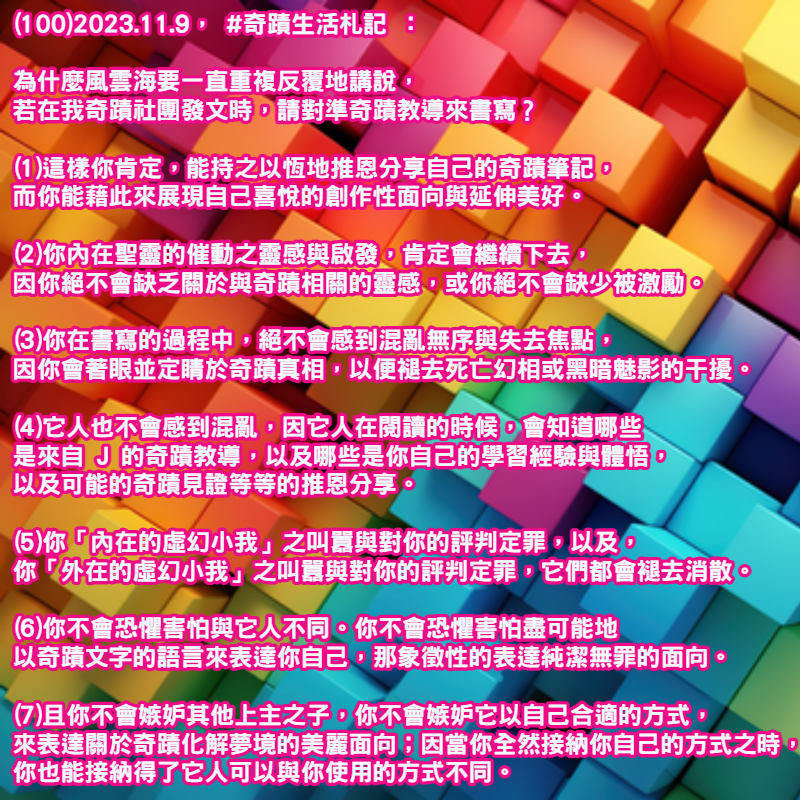 (100)2023.11.9, #奇蹟生活札記 , #風雲海隨筆 :今天想要再次來聊聊,關於在此奇蹟社團(風雲海)發文的事。
